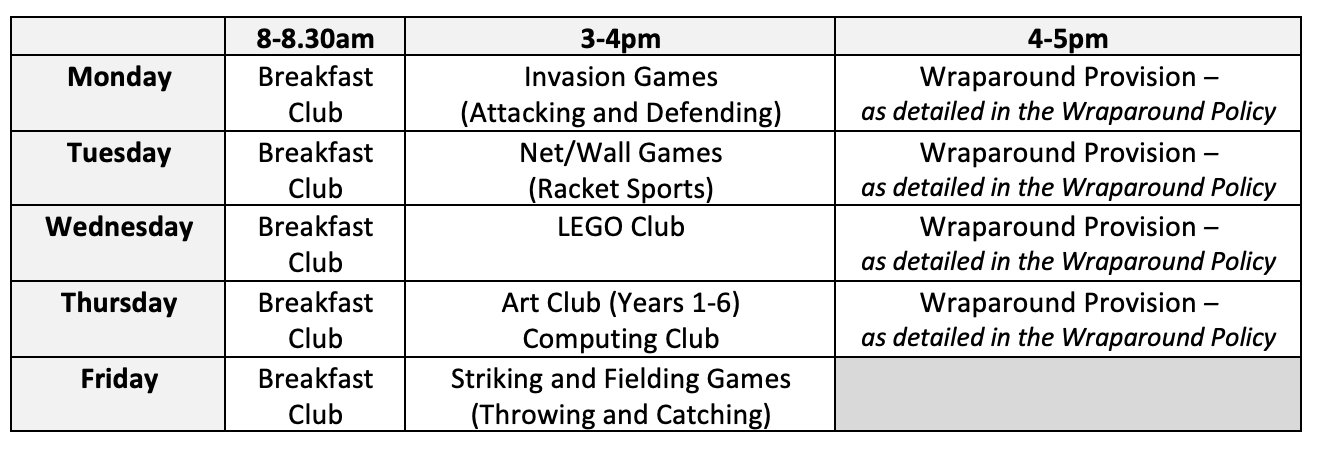 If you require wraparound provision for longer than 5pm (4pm on a Friday), please see below for more information.