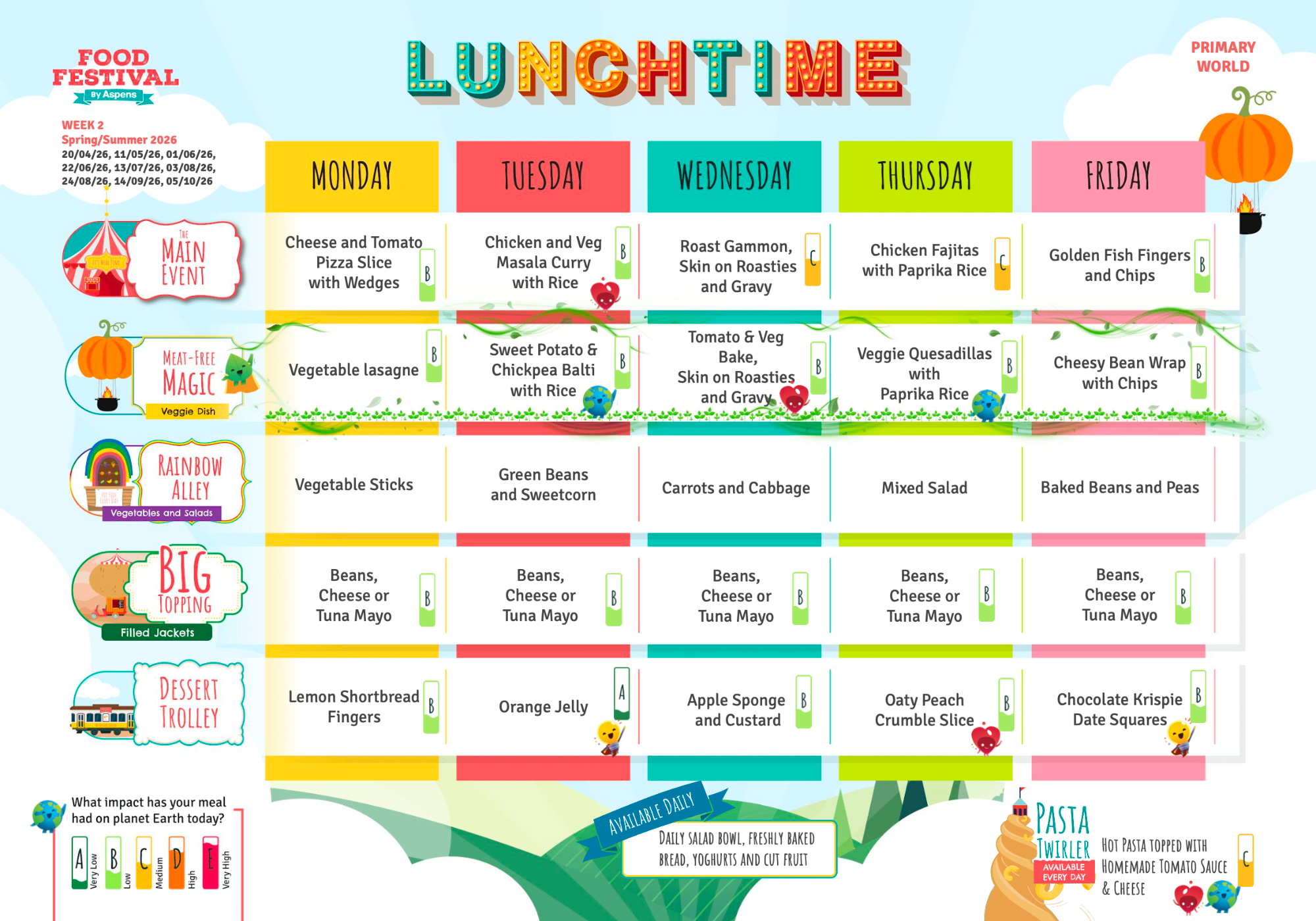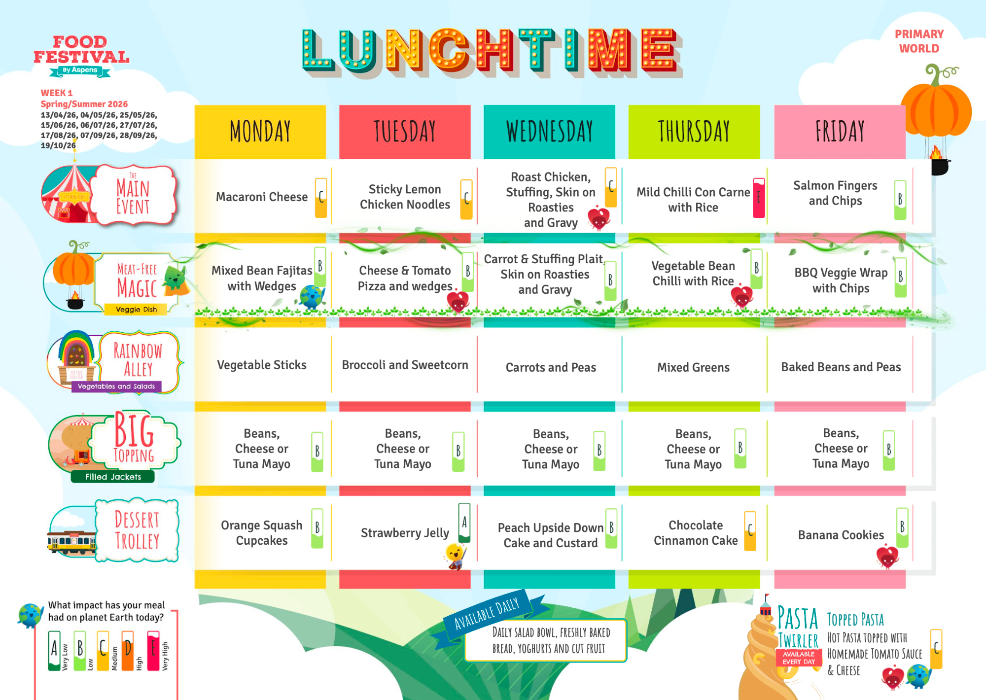 Due to the size of our school, all of our meals are cooked off-site at another primary school and delivered to school daily by Aspens.