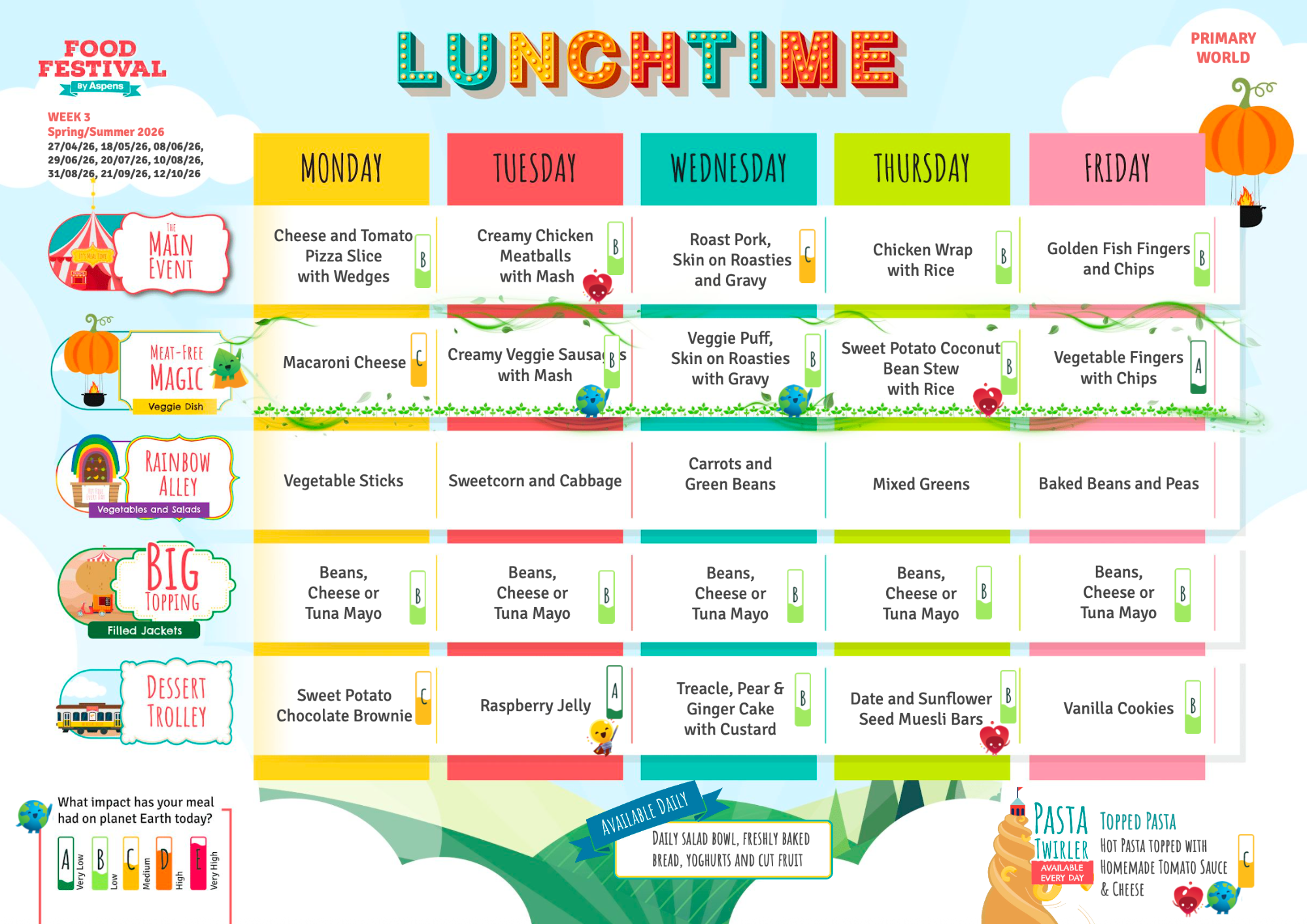 The school menu rotates on a three-week basis and refreshes for Autumn/Winter and Spring/Summer seasons. Please see our current menu below:
